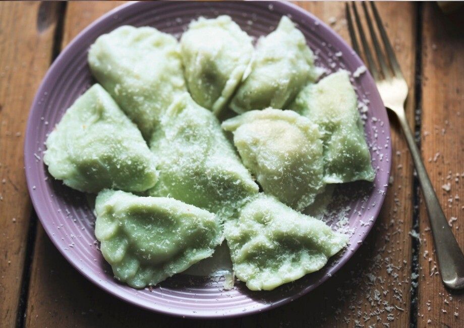 Pierogi ze szpinakiem - produkt garmażeryjny, gotowy do spożycia. Wyprodukowany z mąki pszennej z nadzieniem z białego sera i szpinaku.